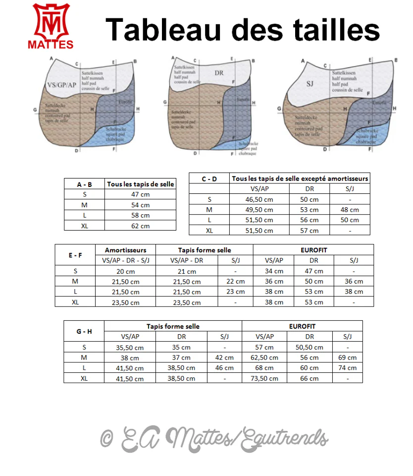 Tapis Eurofit MATTES sur mesure Mouton Décoration (avant et arrière de la selle) avec Correction System®. Le modèle Eurofit dispose d’une petite découpe à l’arrière de la selle.Passants de sangle pour éviter que le tapis bouge. Choisissez les déclinaisons suivantes : – Type de tissu : Coton, tissu sheen (coton satiné) ou velours– Couleur du […]