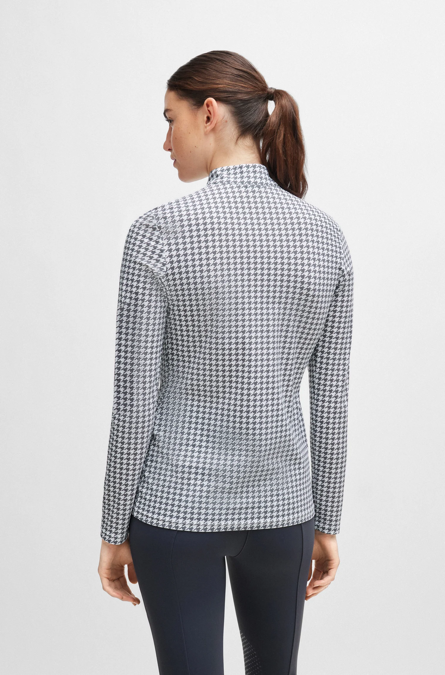 Haut d’entraînement type base layer avec motif pied-de-poule allover et petit drapeau à rayures emblématique sur la manche droite au-dessus du poignet. Un patch en similicuir avec logo BOSS sur la poitrine gauche termine le look.