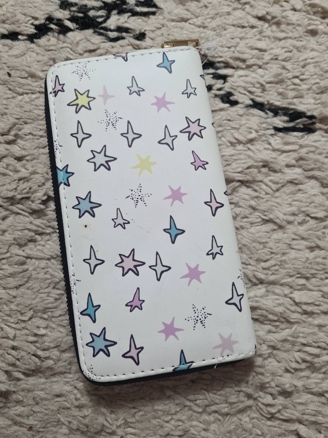 Porte-monnaie avec fermeture à glissière et diverses pochettes pour les monnaies et les billets.