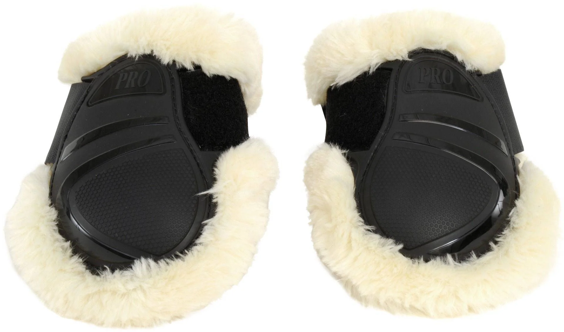 Protège boulets à coque dure doublée en fausse fourrure Grâce à la coque extérieure résistante aux chocs, les jambes du cheval sont protégées de manière optimale contre les blessures. La fourrure synthétique respirante empêche l’accumulation de sueur et l’adhérence.Fermeture velcro.