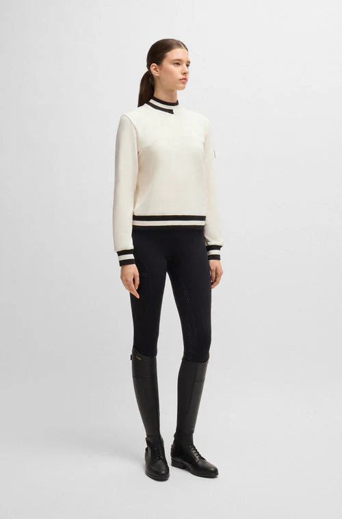 Sweat-shirt super doux avec une part de stretch, molletoné à l’intérieur pour plus de confort. Les poignets et la taille sont avec des rayures et le logo BOSS Equestrian est brodé sur le col, qui est légèrement montant. 95% COTON / 5% ÉLASTHANE