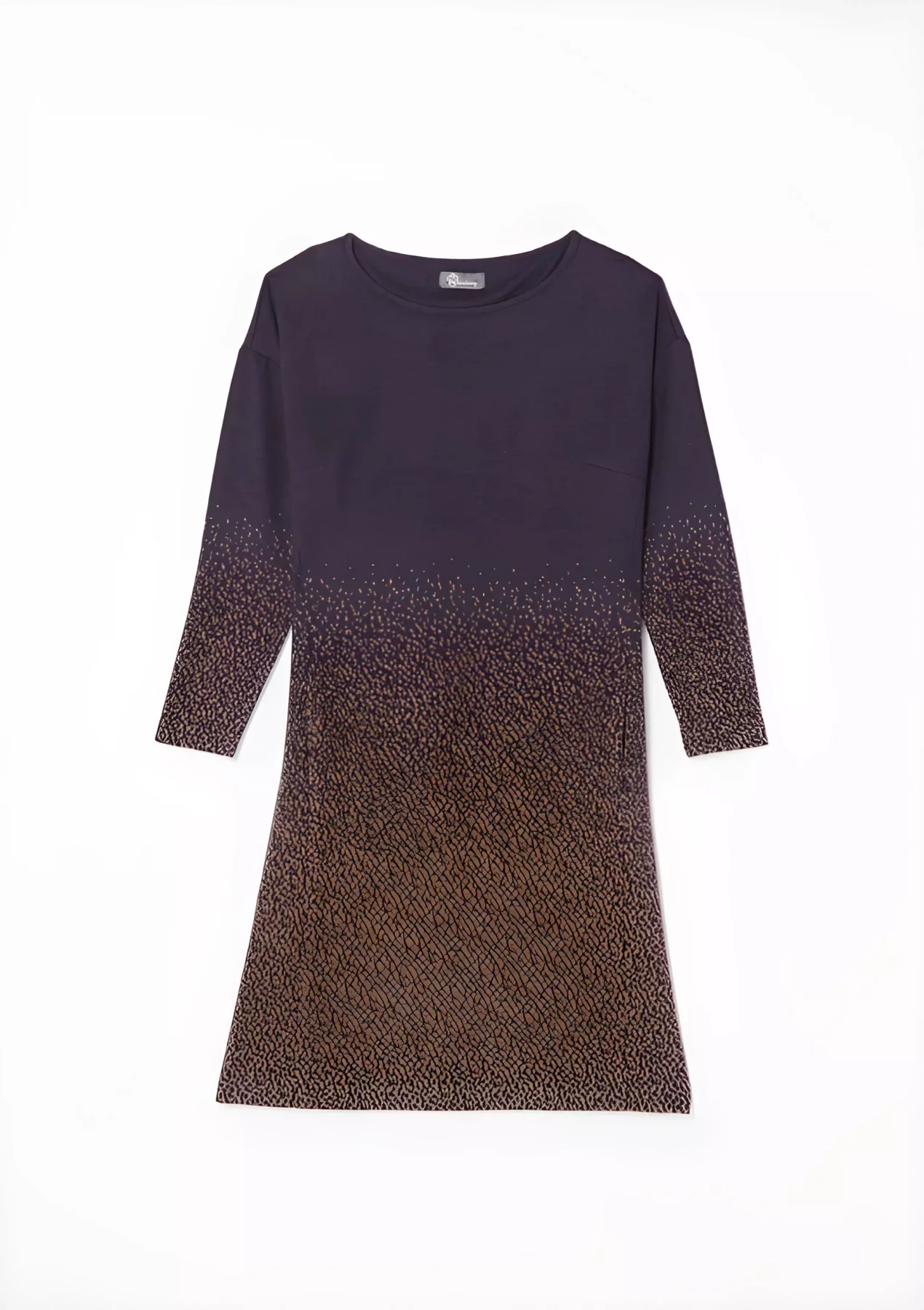 Robe longueur genoux col rond manches trois-quarts motif placé