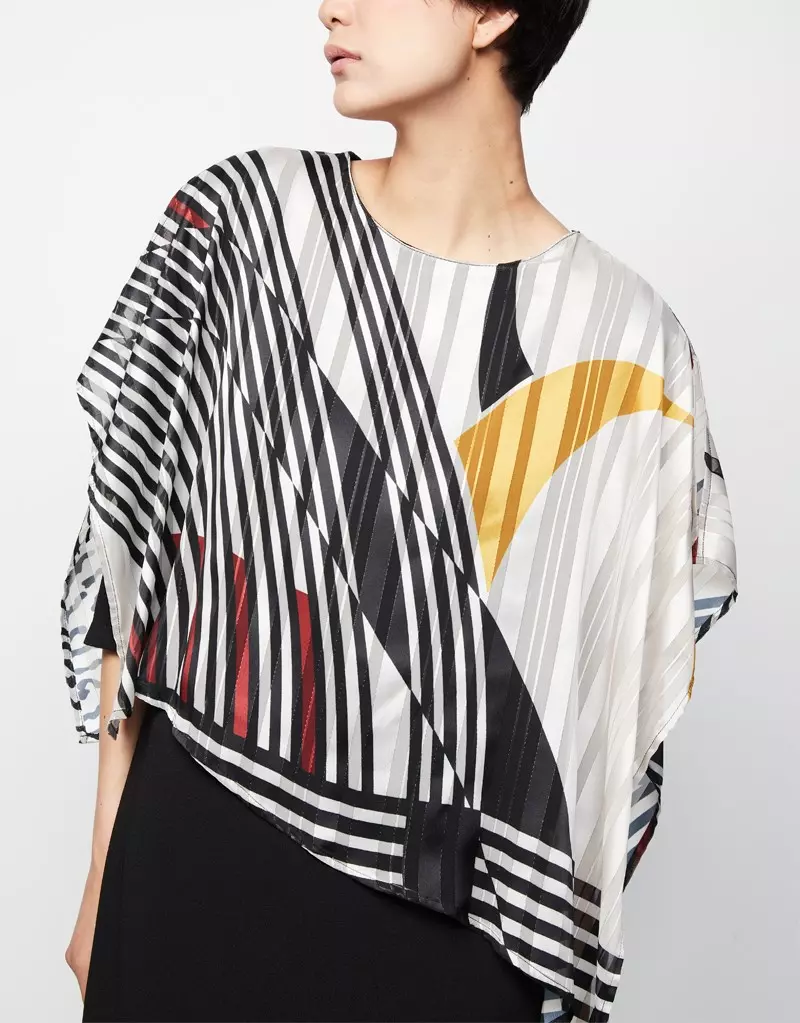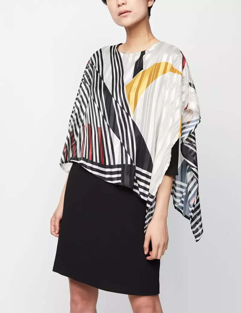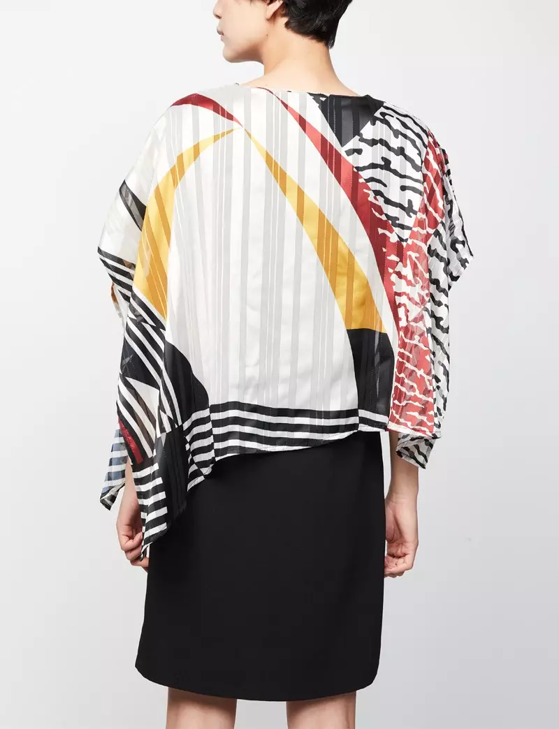 Robe longueur genoux col rond manches trois-quarts voile imprimé