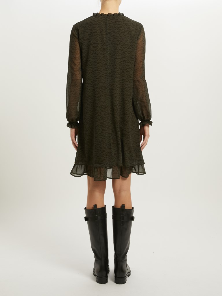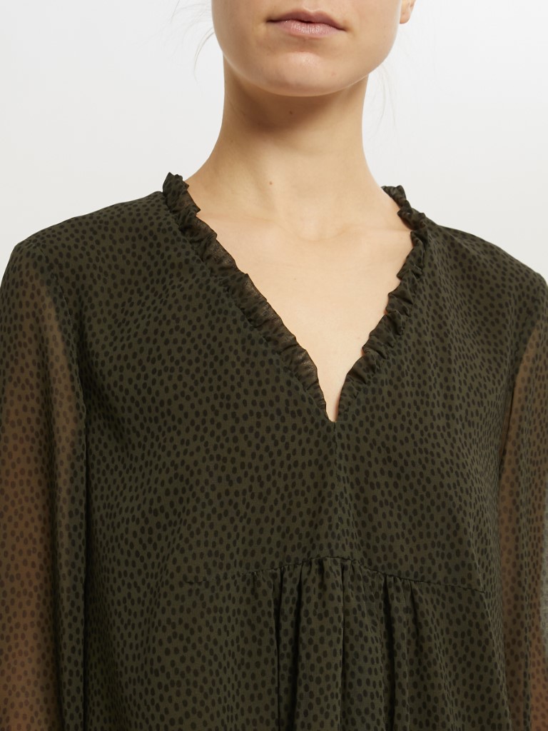 Robe Longueur Genoux Col V Manches Longues Fluides Transparentes Imprimée Pois