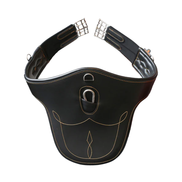 En plus du large plateau de protection, la sangle bavette est anatomiquement conçue pour offrir confort et sécurité lors des sauts tout en limitant le risque de blessures causées par les fers ou crampons. Elle libère les épaules et les coudes du cheval, lui permettant de mieux respirer et est conçue pour suivre le mouvement naturel du cheval. La sangle bavette dispose d’une mousse de protection EVA, d’élastiques triplement renforcés à chaque extrémité pour égaliser la pression, ainsi que trois anneaux en D pour fixer les enrênements et une martingale. La sangle est faite en similicuir qui n’absorbe pas les saletés ou la transpiration et est donc plus durable. Elle ne change pas de couleur et ne s’abime pas facilement. Utilisez notre spray nettoyant pour lui donner la touche brillante !