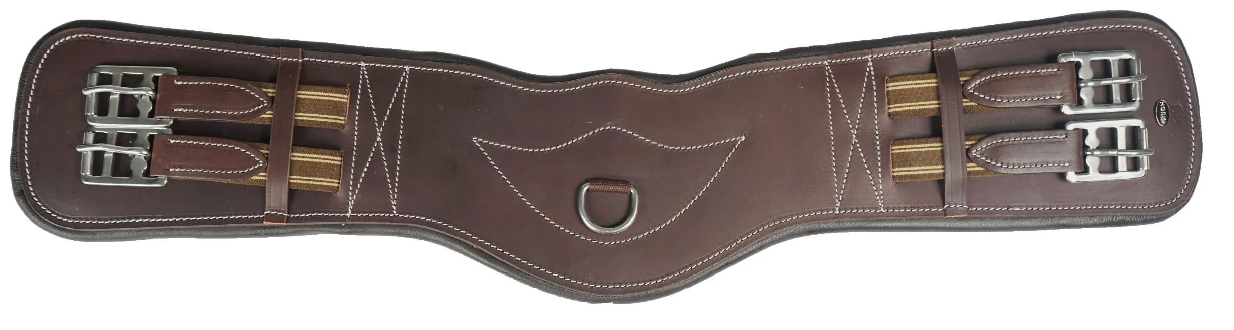 Faite de cuir de haute qualité, avec une partie élastique pour plus de confort lors du serrage de la sangle.