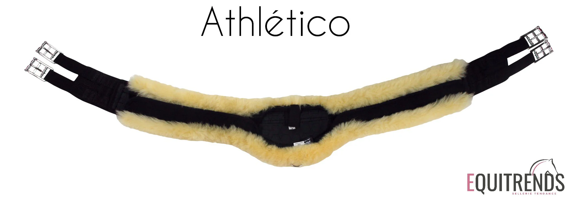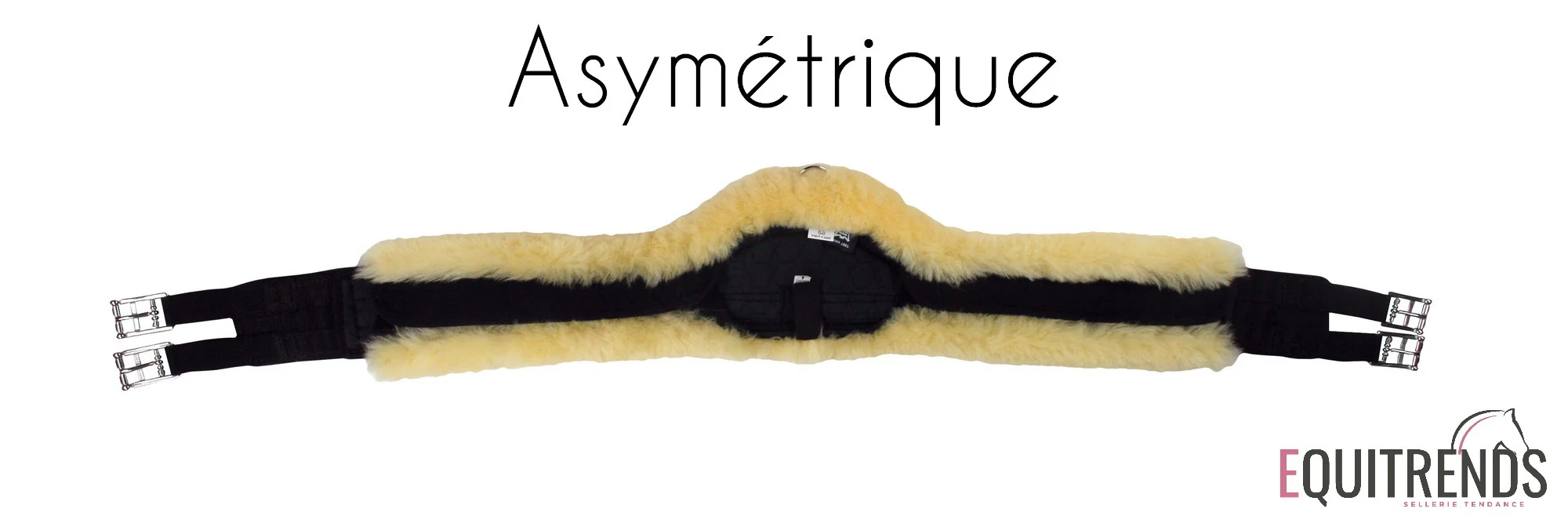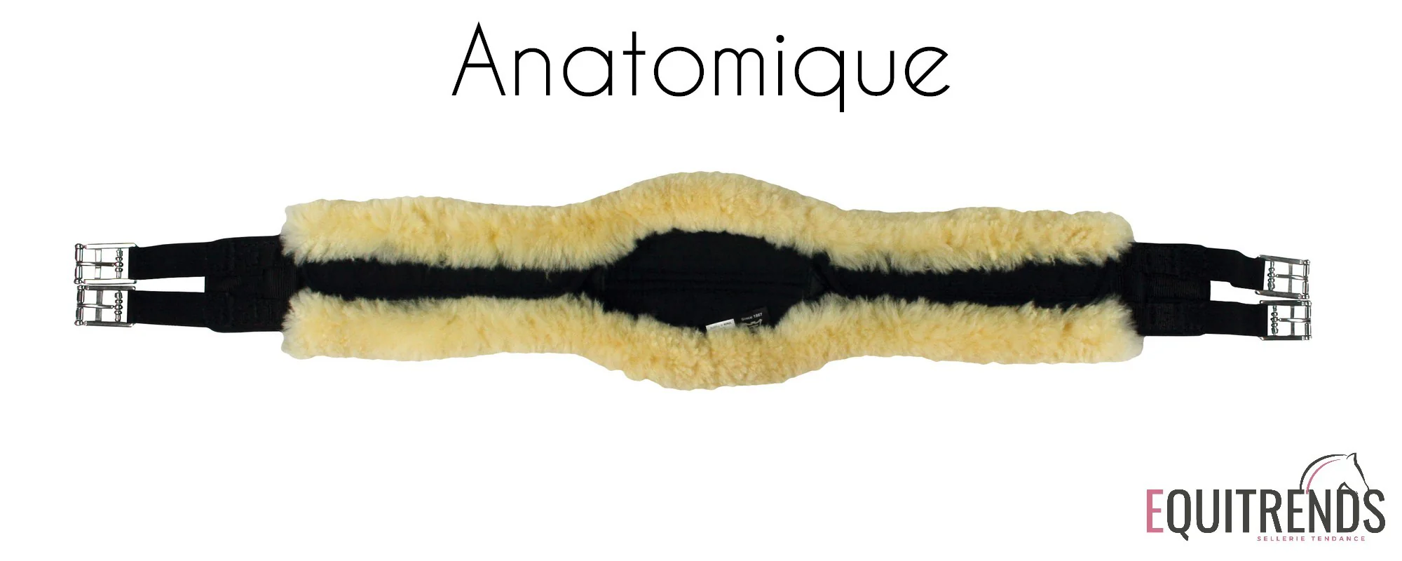 Pour les chevaux plus „ronds“ à dos court, cage thoracique large et poitrail étroit. Grâce à sa forme particulière, la sangle suit bien le galbe des côtes, ce qui l’empêche de glisser vers l‘avant.
