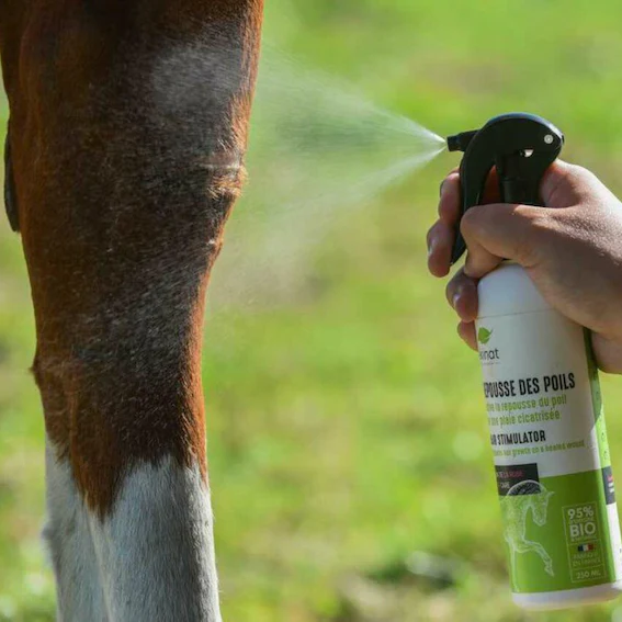 Le spray spécial repousse des poils Ekinat pour chevaux est formulé à base de cresson et d’extrait d’ail.