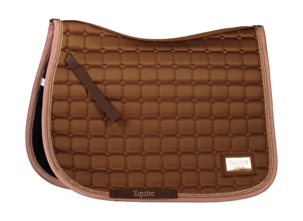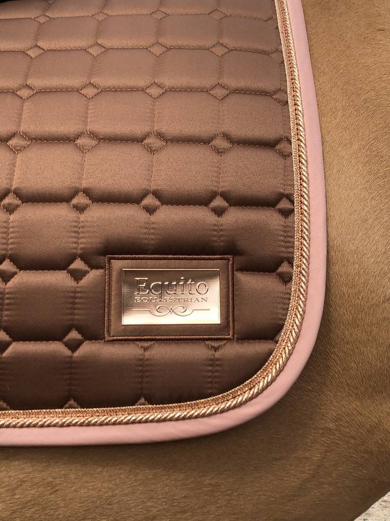 Tapis de selle en coton camel qualité supérieure et très bien taillé ! Surpiqûres octogonales, badge en rose gold et cordelettes rose gold et bande pailletée.Bordure rose pâle. Dessous en mesh pour un meilleur confort. Entretien : Laver à 30 ° C dans un sac à linge. Ne pas sécher en machine. S’étire lorsqu’il est […]