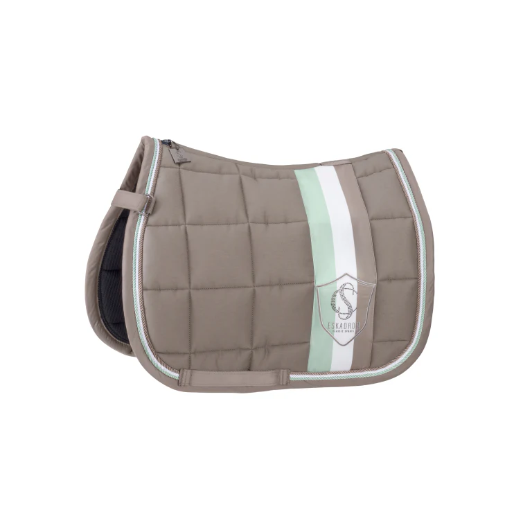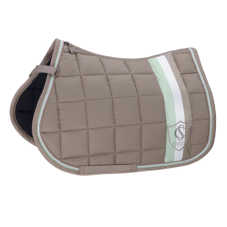 Le retour du tapis de selle Eskadron emblématique Big Square, avec ses grandes surpiqures carrées et sa bande verticale tricolore à l’arrière !