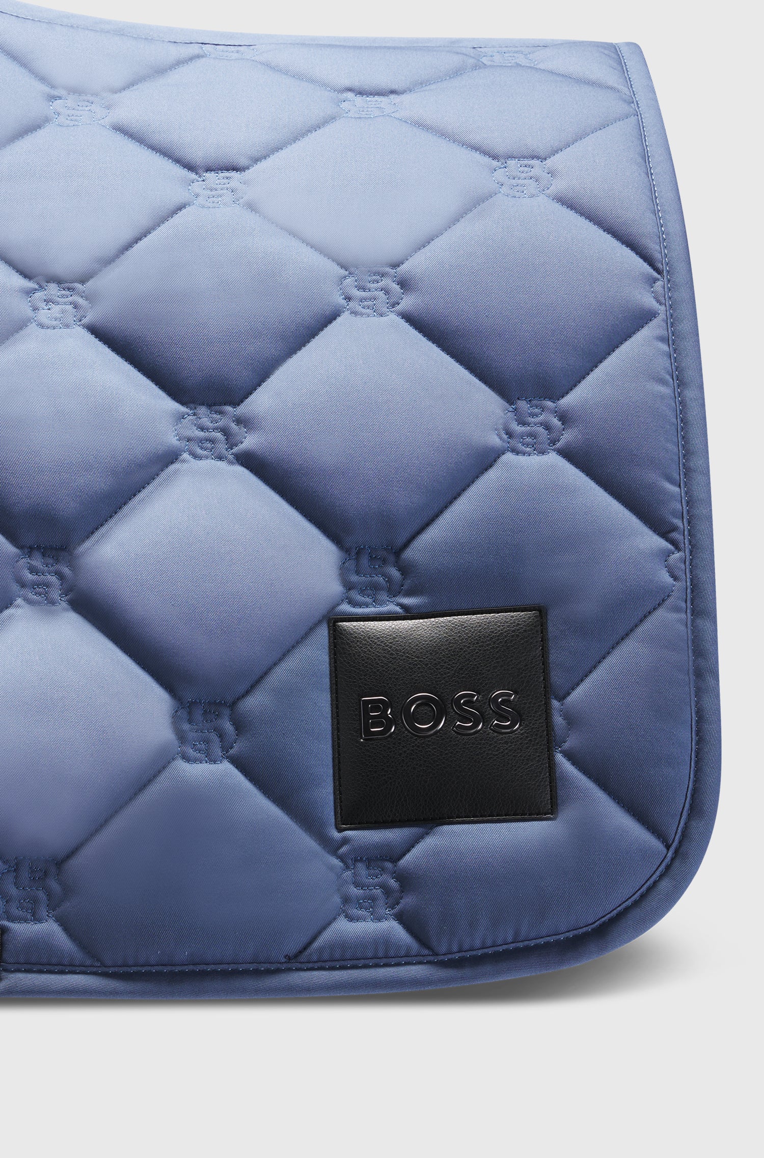 Tapis de selle Bleu marine décoré d’un patch en similicuir sur le côté gauche avec le logo Boss et les rayures signatures de la marque