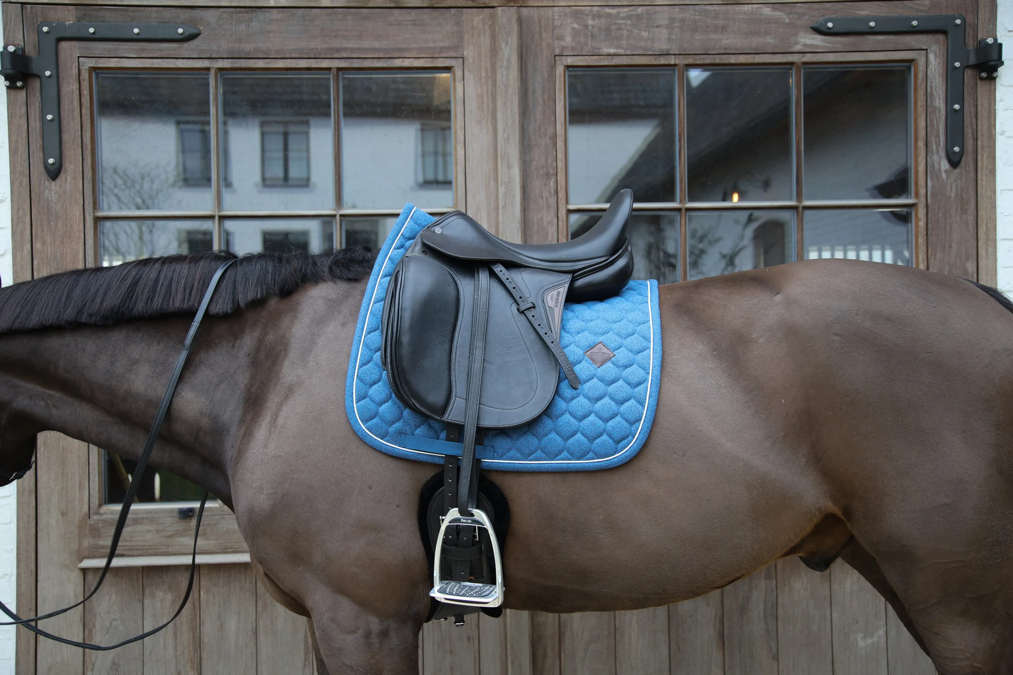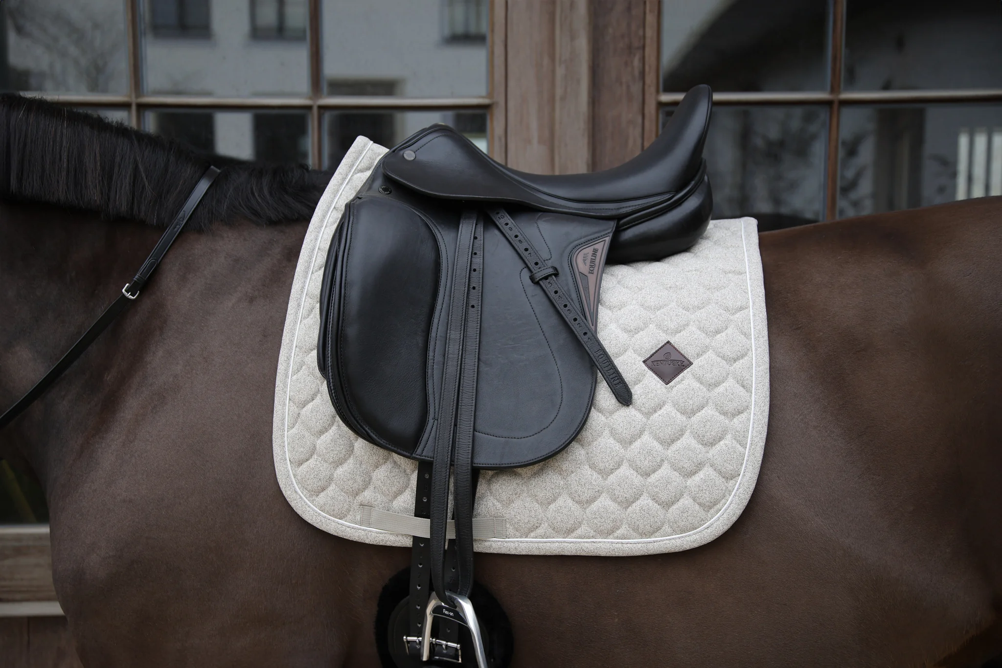 Le Tapis de Selle Melange se distingue par sa texture melange sophistiquée qui apporte une touche élégante à votre matériel. Le tissu respirant assure que ton cheval reste frais et confortable, tandis que le rembourrage offre l’amorti nécessaire pendant les longues séances. Idéal pour l’entraînement quotidien ou les occasions spéciales, ce tapis de selle allie fonctionnalité et style. Disponible en forme de saut d’obstacle et de dressage.