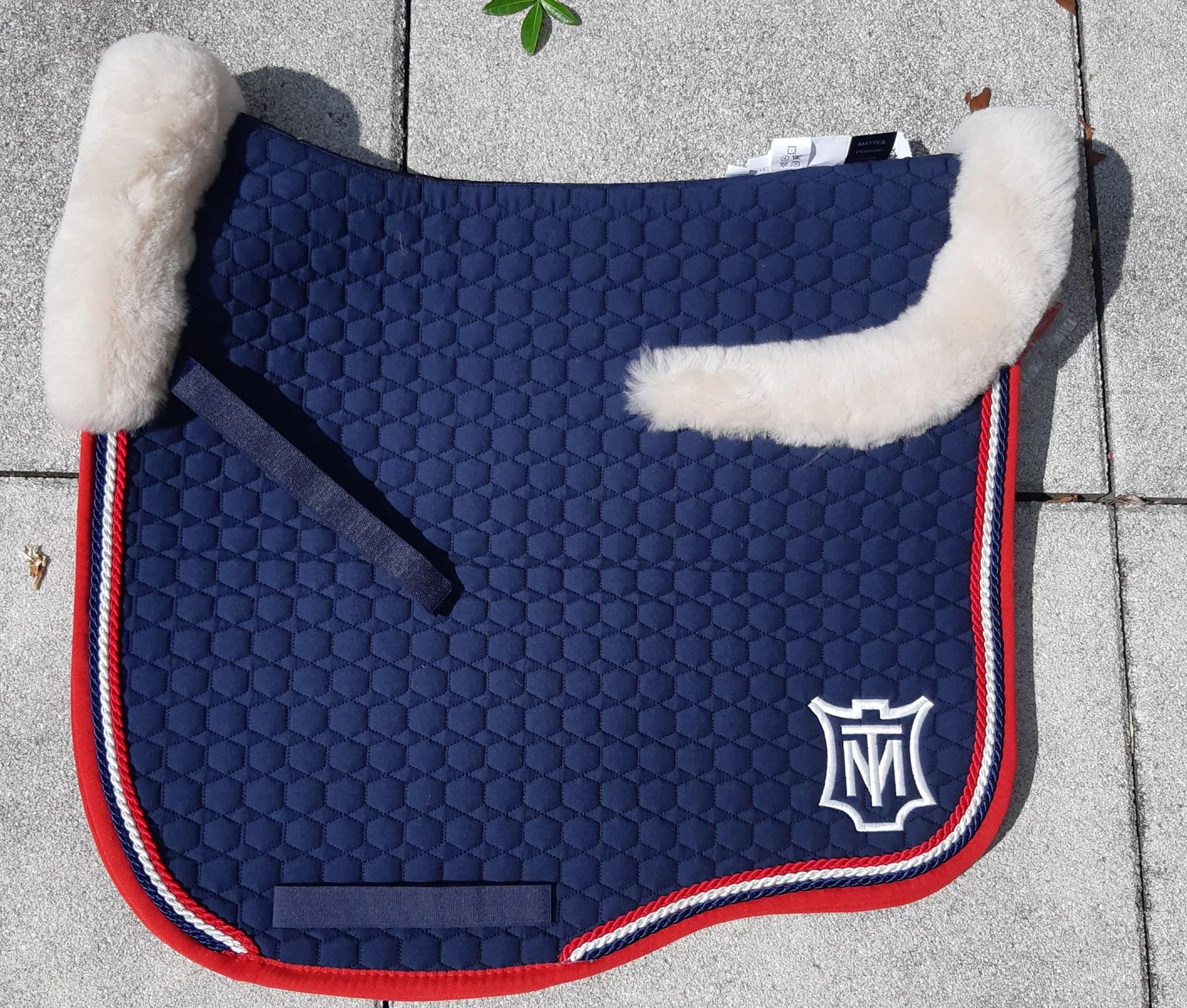 Eurofit MATTES de couleur marine, liseré rouge Passants de selle et passants de sangle pour éviter que le tapis bouge. Cordelettes bleu, blanche, rouge Mouton à l’avant et à l’arrière platine Choisissez les options suivantes: – 4 tailles disponibles: S (16,5″), M (17″), L (17,5″) et XL (18″) – 3 formes: mixte, saut et dressage