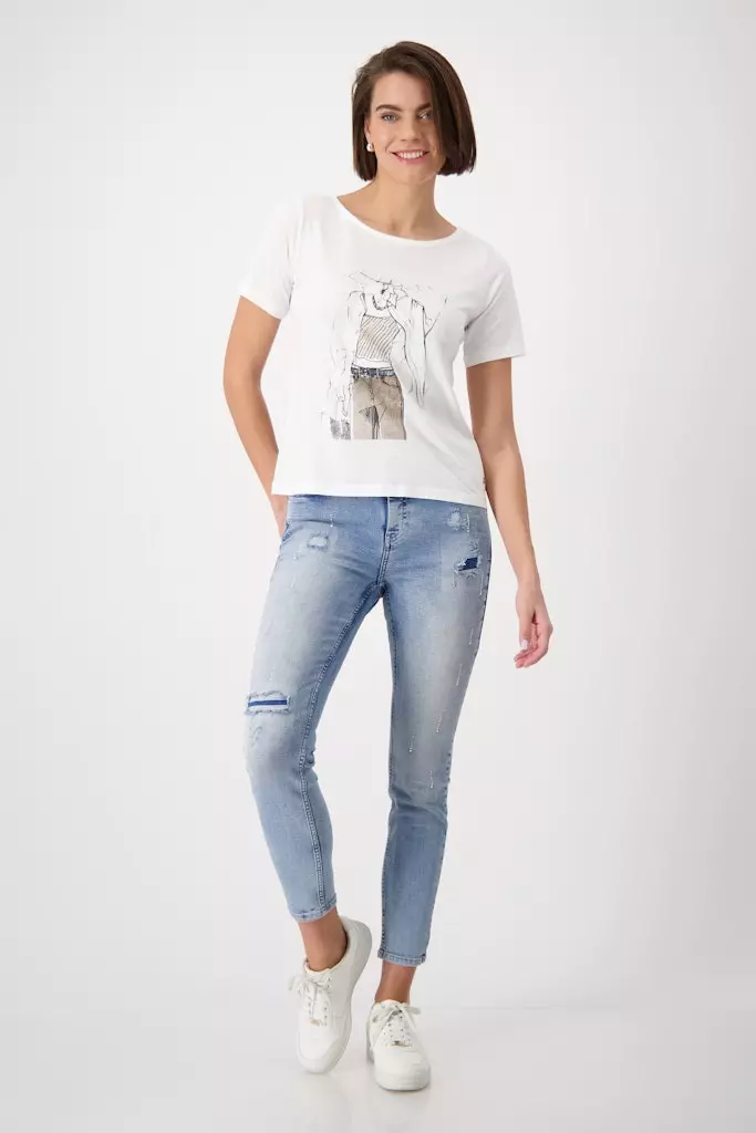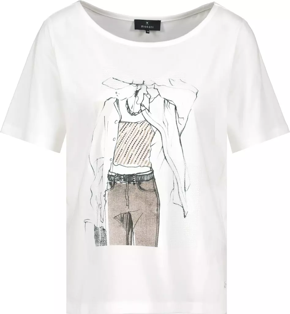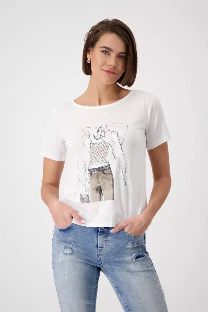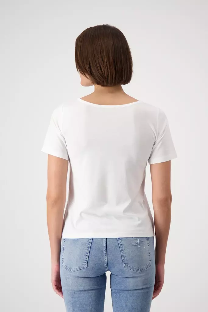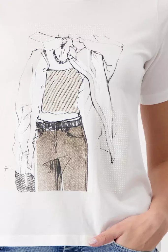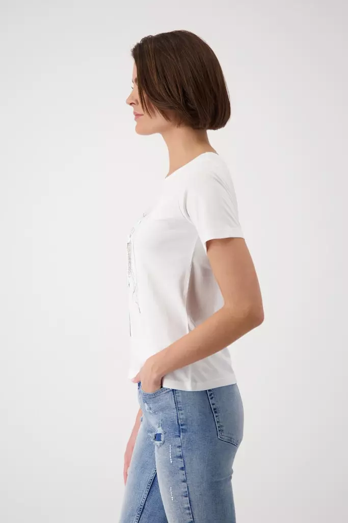 Tee Shirt Col Rond Manches Coudes Motif Placé Strass
