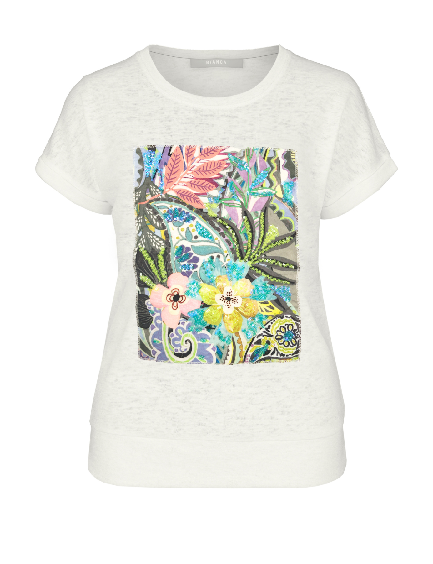 Tee Shirt Col Rond Manches Courtes Motif Placé Bas Bande