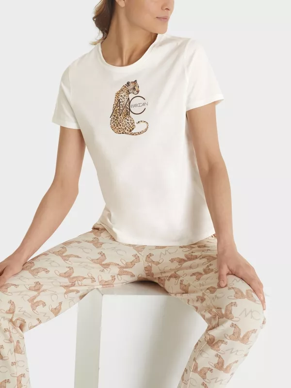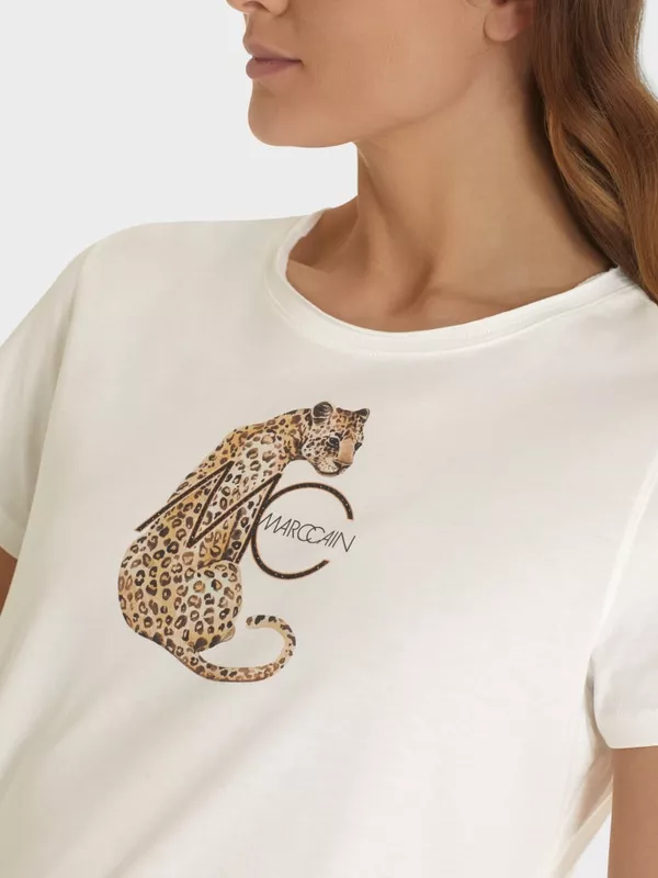 Tee Shirt Col Rond Manches Courtes Motif Placé Tigre