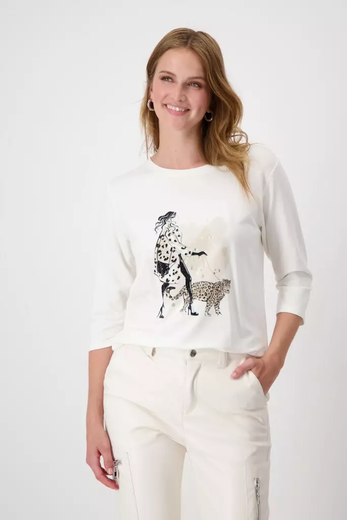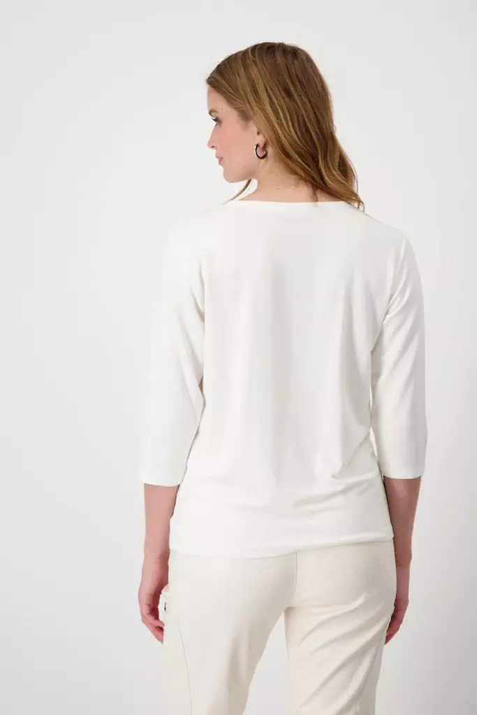 Tee Shirt Col Rond Manches Trois-quarts Motif Placé