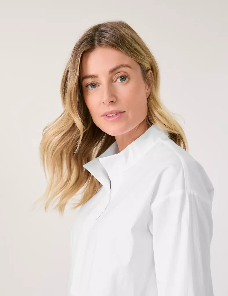 Blouse Col Bénitier Cordons Manches Longues Motif Placé