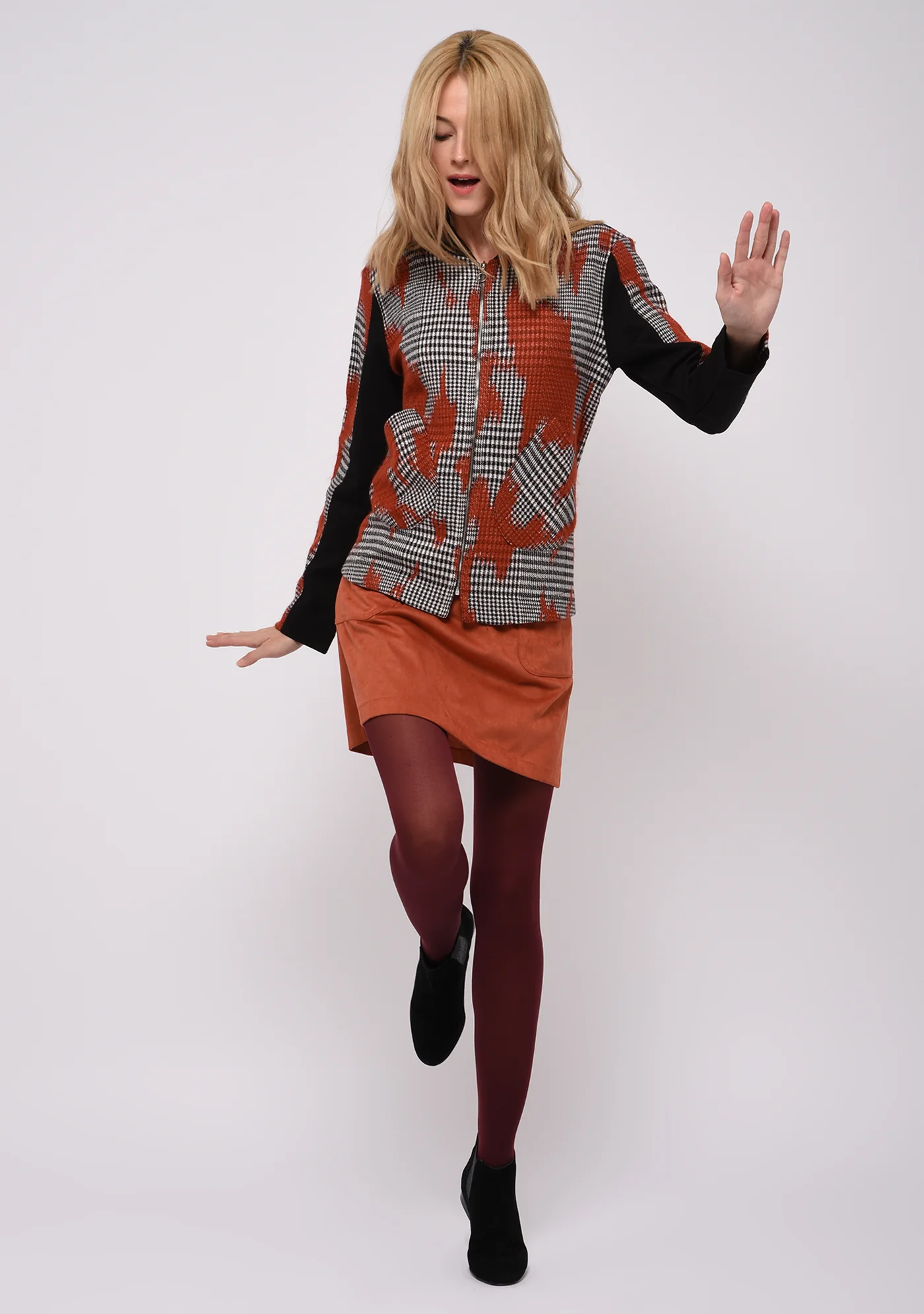 Tissu grand confort et chaud, c’est comme porter la douceur d’une écharpe en veste. A porter sur toutes vos jupes et pantalons: confortable comme un pull, doux comme une écharpe, chaud comme un manteau. Col de bombers Manches longues en deux matières. Fermeture zippée 2 grandes poches plaquées, mais attention de ne pas trop les […]