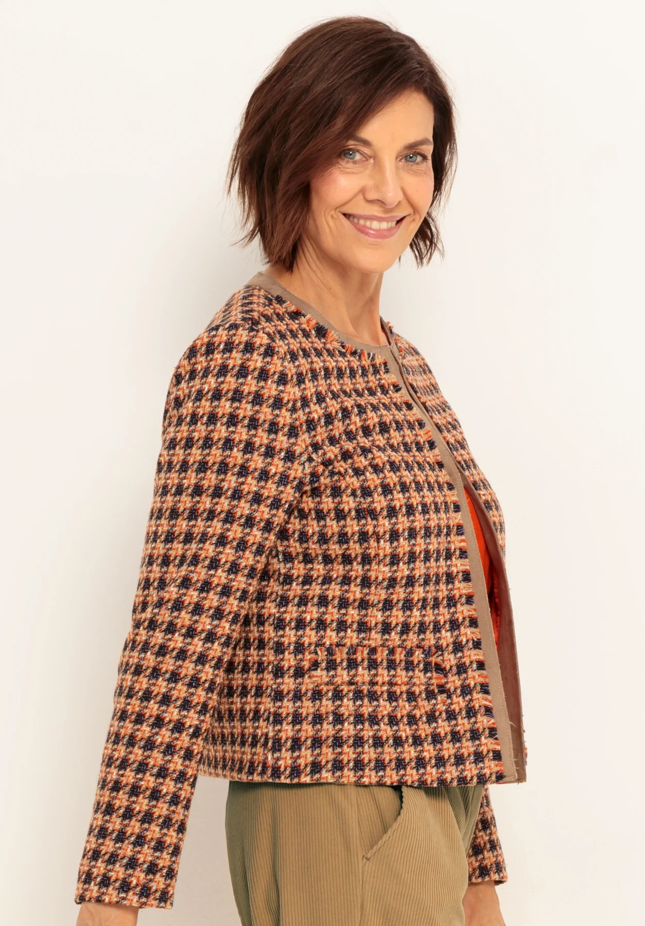 Veste Manches Longues Bord à Bord Deux Poches Tweed Agrafes Col